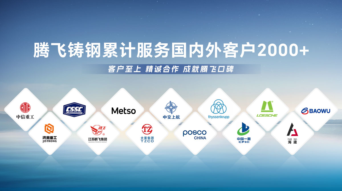 騰飛鑄鋼成立于2006年,位于全國鑄造基地河南省新鄉市,擁有員工300余人,是一家從事150噸以下碳鋼、低合金鋼、不銹鋼鑄鋼件研發、制造、服務為一體的國家高新技術企業?! 」就ㄟ^了ISO9001國際質量管理體系認證,擁有2項發明專 利,2項河南省科技成果、25項實用新型技術,通過了“環保績效評級B級企業”驗收,先后榮獲“河南省鑄造行業綠色發展企業”、 “河南省科技型中小企業”、“河南省專精特新中小企業”等榮譽稱號?! 」緭碛?臺25噸電爐,4臺大型天燃氣熱處理爐、10米回旋自動拋丸機一臺, φ8m數控立車、φ10m數控滾齒機等各類高精裝備100余臺套,年產能3萬余噸,能為客戶提供從產品設計、木模加工、大型鑄造、大型加工一站式服務,產品廣泛應用于建材、冶金、鍛壓、冶金、水工、路橋、化工等多個重型行業。  長期服務于中信重工、中船重工、美卓、上海中交、萊歇、寶武、濟南重工等全球知名企業,在行業內擁有較高的市場知名度和美譽度。